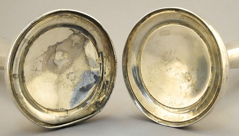 LOT 7 Sterling Silver Bud Vases with Birks Dish & Henry Wigful Spoon & Pusher Cased Set, TW 544 Grams. Estimate: $200 - $300 Sold For: $180 Auction Date: Tuesday, December 05 2023 at 4:00 PM