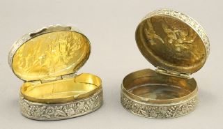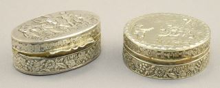 2 Italian Pill Boxes, / 1 Marked (.800) / 1 Unmarked, 1 1/2 & 1 3/8"W , 27.9 Grams.