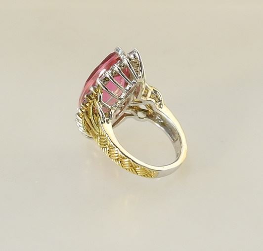 Gilt Silver (marked 925) Pink & White Stone Ring, Size 6, 7.45 Grams