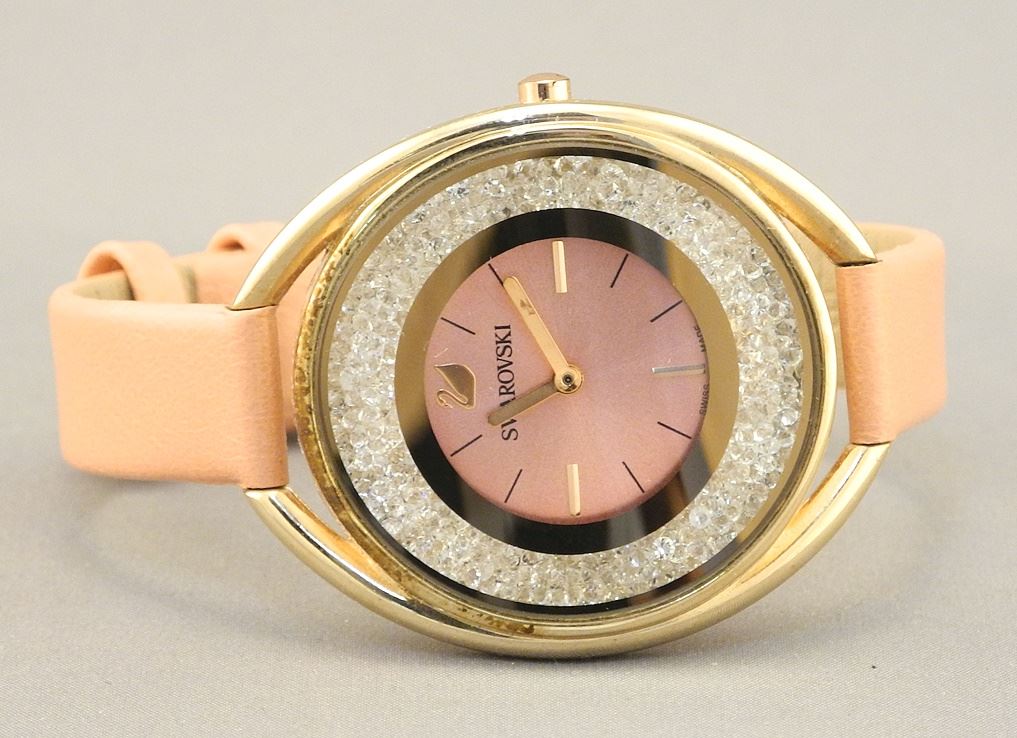 Swarovski Pink & Crystal Wristwatch # 3055, Lot Includes Box (needs battery).