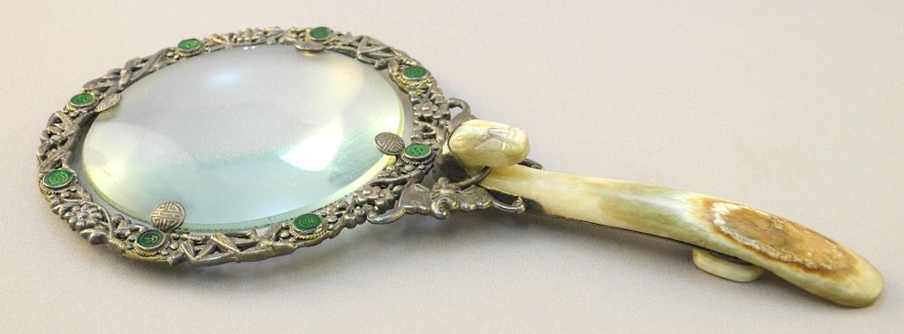LOT 217 Chinese Jade Handle and Silver Alloy Magnifying Glass Inlaid with Jade, 7 1/2" L. Estimate: $425 - $600 Auction Date: Tuesday, February 13 2024 at 4:00 PM