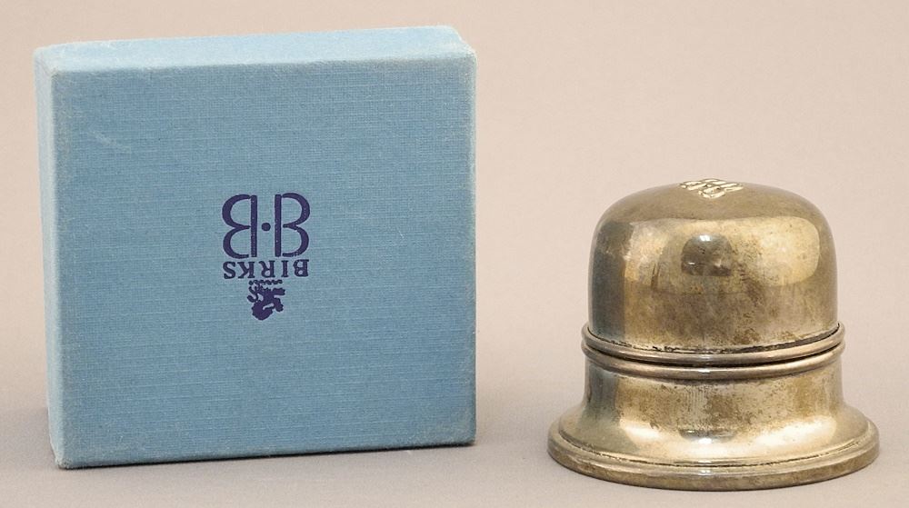 Birks Sterling Silver Domed Ring Box in Original Box, 1 1/2"H, TW 61.2 Grams (dent on top no