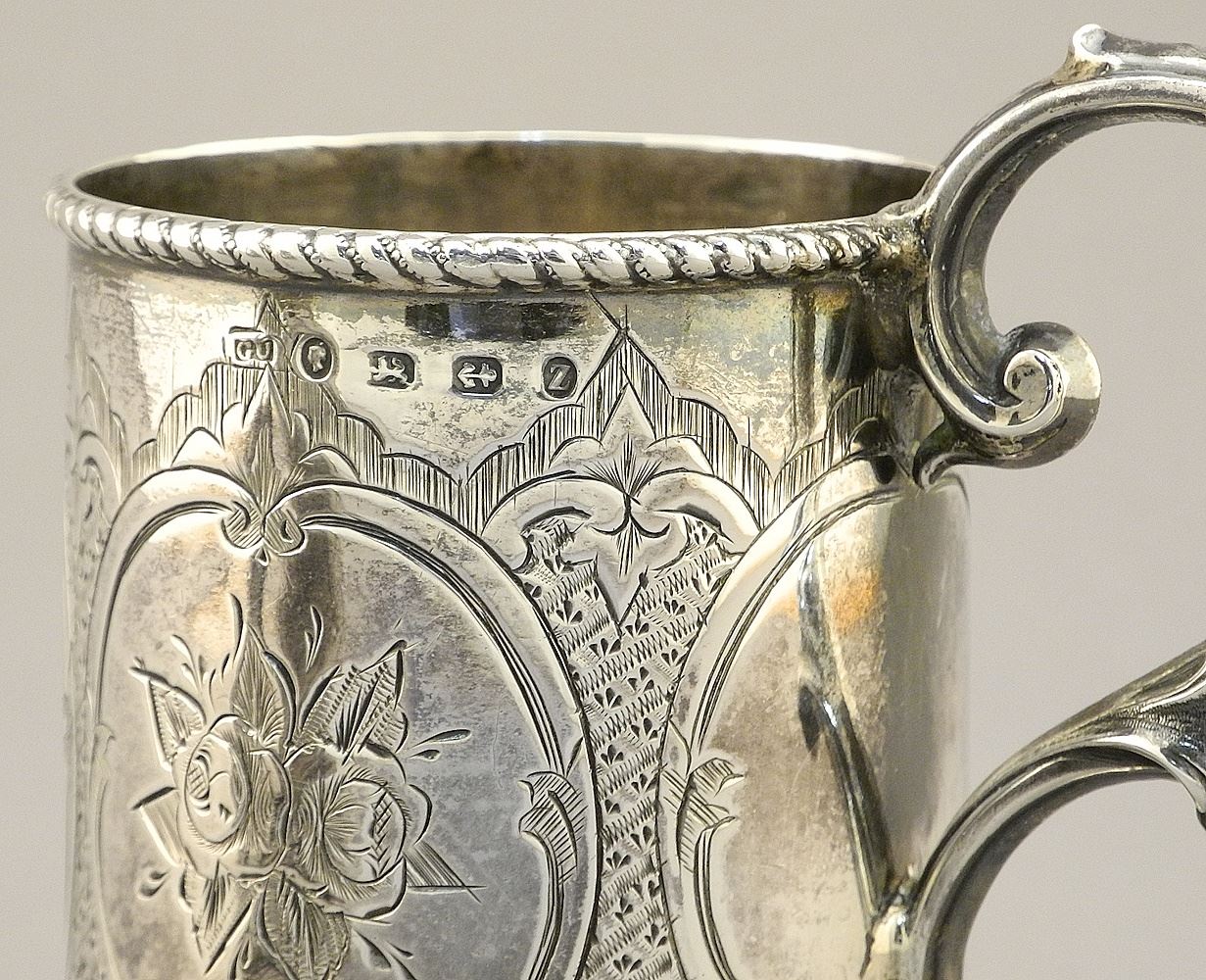 Hallmarked Christening Cup (repaired) & Cigarette Case, 3 3/8" & 3 1/4"H, 153 Grams (as f