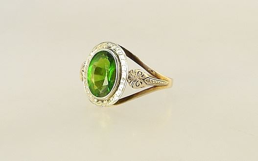 14K (marked) Yellow & White Gold Ring with Green Stone, Size 6 1/4, 2.3 Grams.