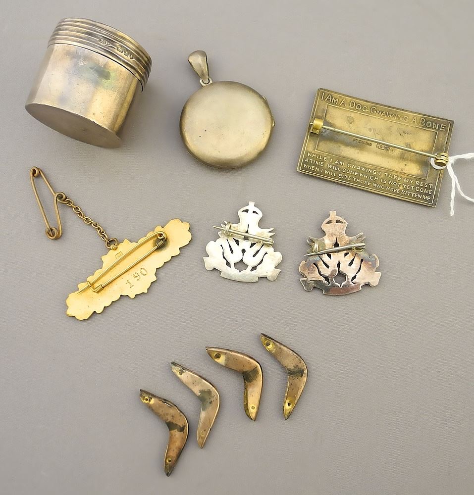 LOT 124 Silver Box, Sterling Pin, 4 Rose Gold Corners,2 Lapel Pins, Horse Club Ba Estimate: $50 - $80 Sold For: $130 Auction Date: Tuesday, February 13 2024 at 4:00 PM