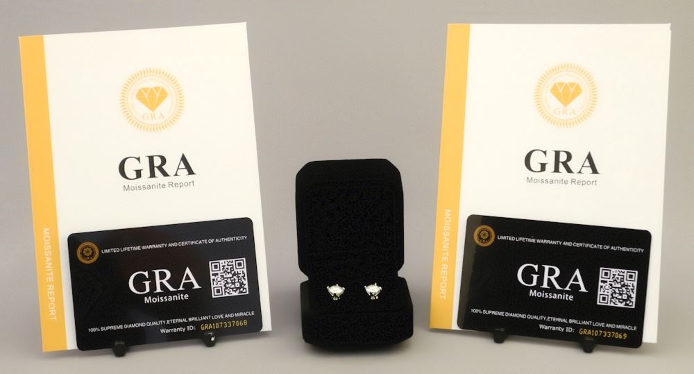 LOT 188 1ct Moissanite Earrings set in 14K White Gold, GRA Certified. Estimate: $80 - $100 Sold For: $150 Auction Date: Tuesday, February 13 2024 at 4:00 PM