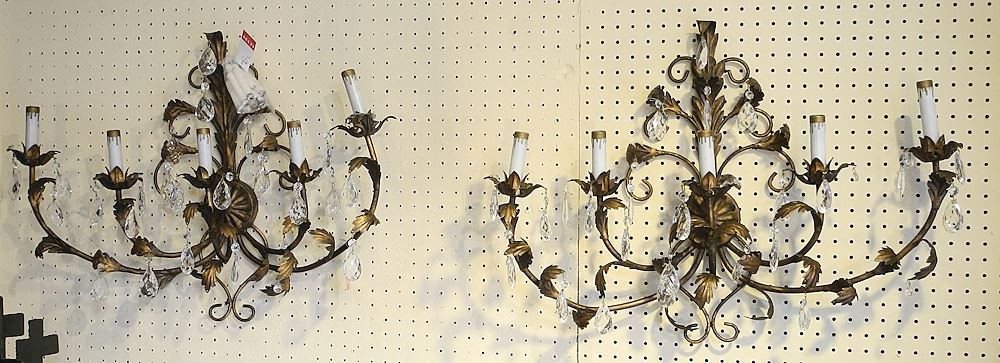 LOT 44 Pair of Spanish 5 Socket Crystal Droplet Wall Sconces, 20 1/2 x 28 x 6 1/2" Estimate: $250 - $350 Auction Date: Tuesday, February 13 2024 at 4:00 PM