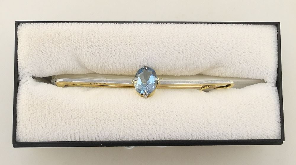 LOT 58 Antique 15K & Platinum Aquamarine Brooch. Estimate: $375 - $575 Auction Date: Tuesday, February 13 2024 at 4:00 PM