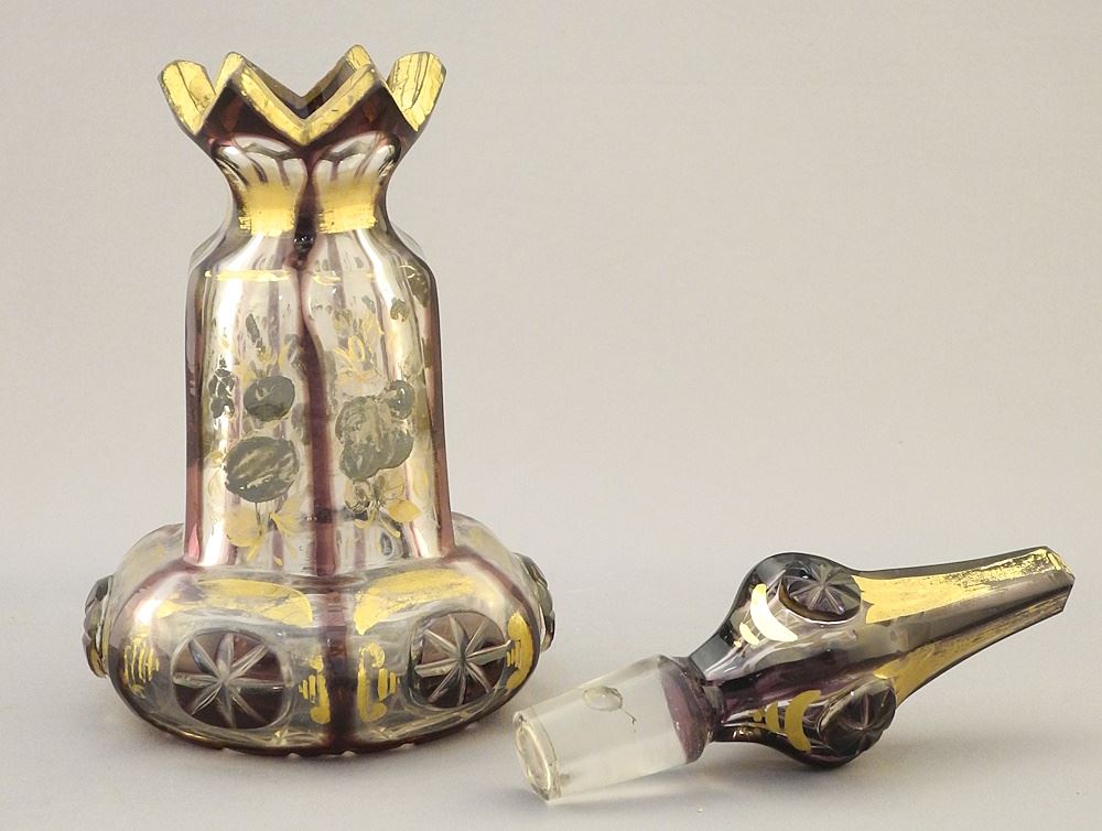 LOT 5 19th C. Bohemian Amethyst Cased Glass Scent Bottle, 7 7/8"H. Estimate: $60 - $80 Sold For: $50 Auction Date: Tuesday, February 13 2024 at 4:00 PM