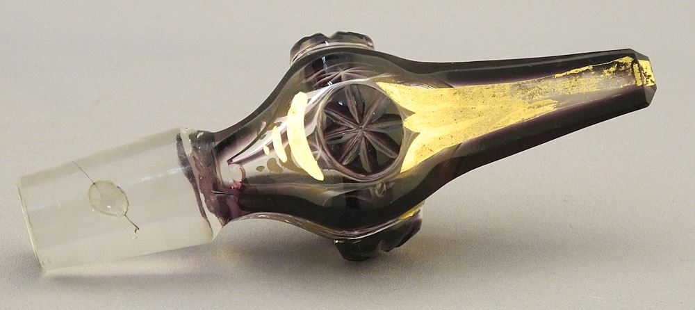 19th C. Bohemian Amethyst Cased Glass Scent Bottle, 7 7/8"H.