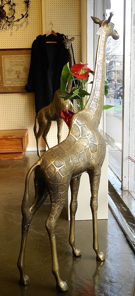 2 Brass Giraffes, 53 1/2"H & 46 1/4"H.