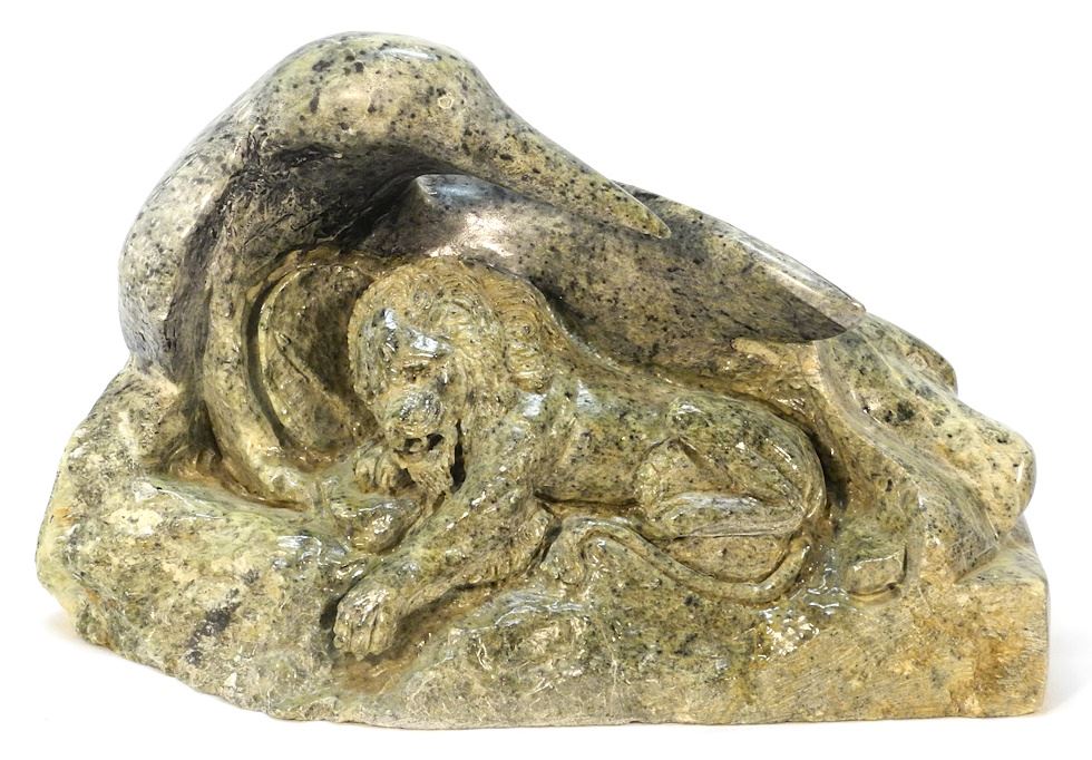 LOT 163 Marble Sculpture, 9 x 15 1/2 x 5", "Bird Nesting with Lion". Estimate: $150 - $300 Auction Date: Tuesday, February 13 2024 at 4:00 PM