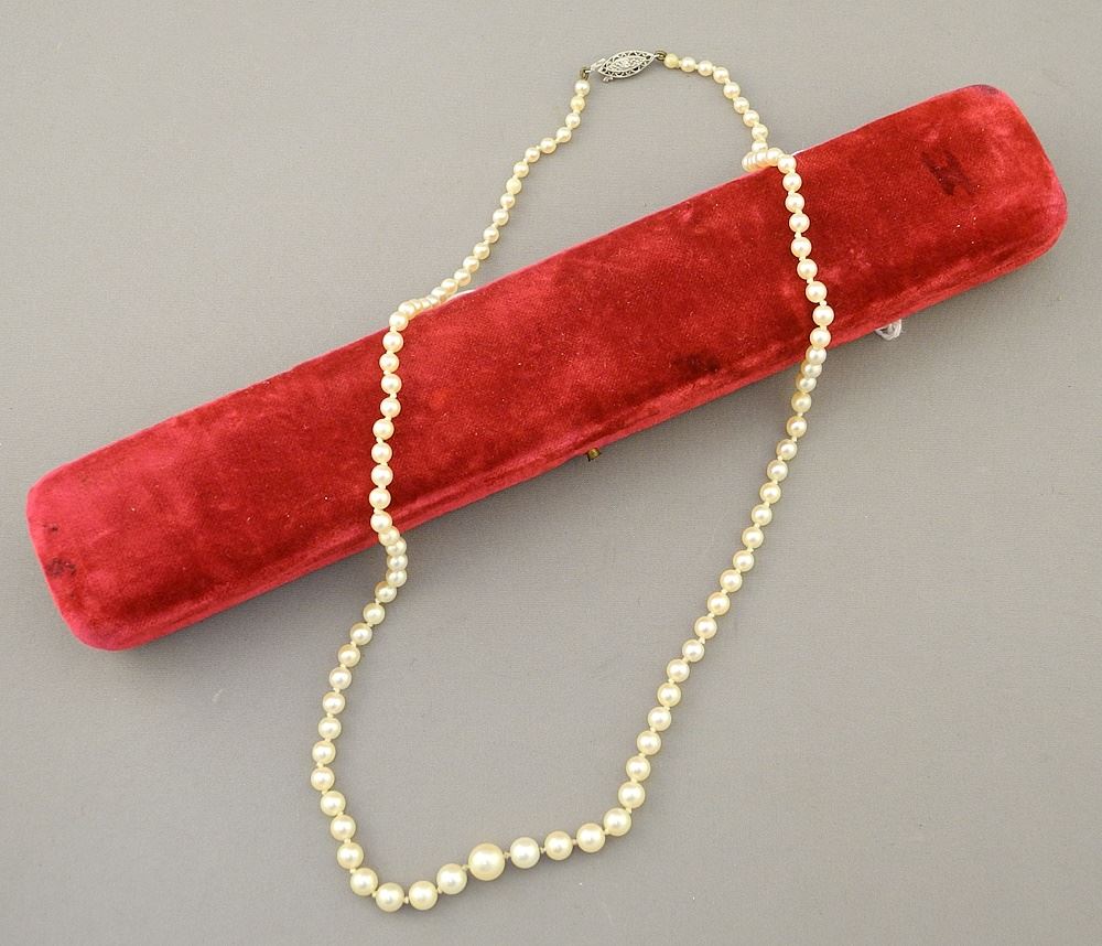 English 9ct (375) White Gold Diamond (tested) & Cultured Pearl Necklace, 20 1/2"L.