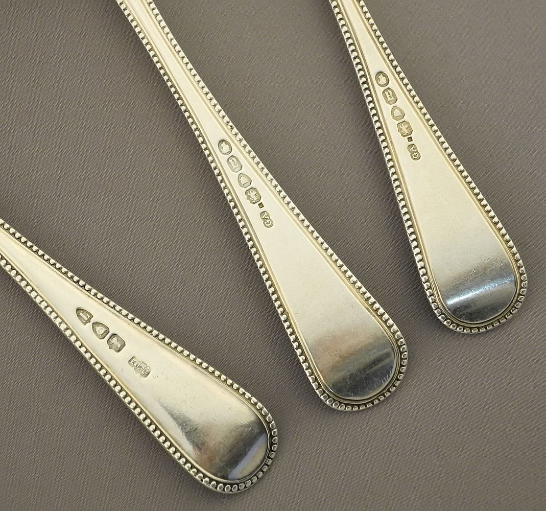 9 Hallmarked Silver Dinner Forks, 8"L, 821 Grams.