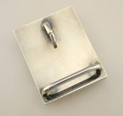 LOT 126 Wood Inset Spanish 925 (marked) Silver Buckle Converted to Pendant, 1 7/8"W, 53 Grams. Estimate: $50 - $70 Sold For: $40 Auction Date: Tuesday, February 13 2024 at 4:00 PM