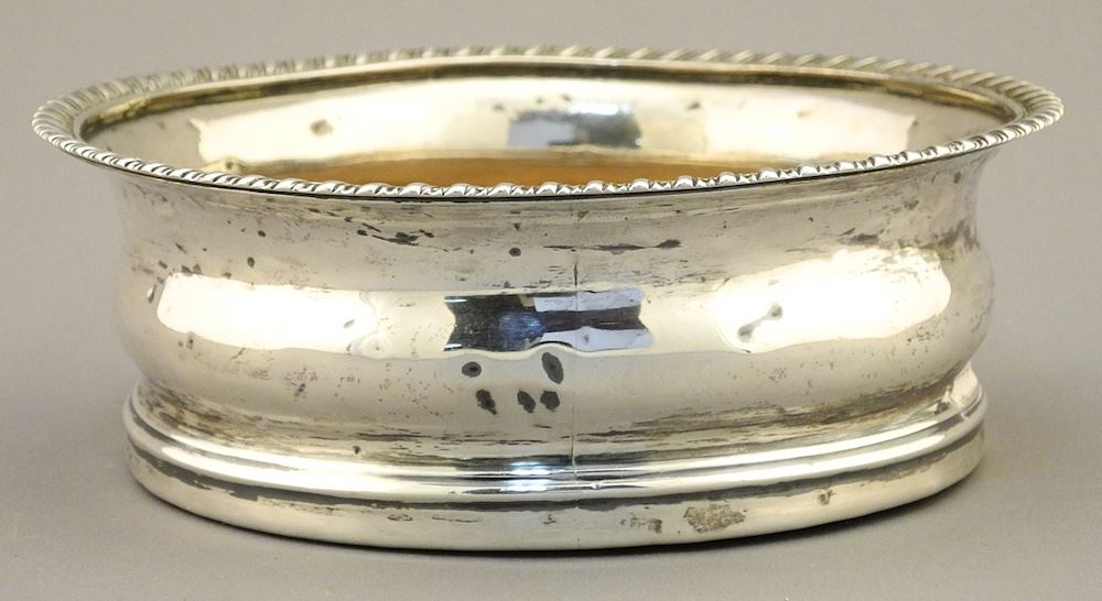 LOT 27 Georgian Silver Wine Coaster, Possibly CC London 1810, 2" x 5 7/8" TW 247 Grams. Estimate: $150 - $200 Sold For: $160 Auction Date: Tuesday, February 13 2024 at 4:00 PM