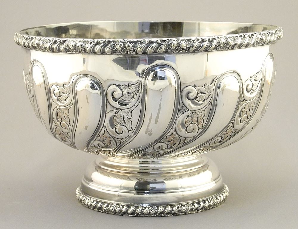 LOT 62 Sheffield Reproduction Silver Plated Center Bowl, 5 1/8" x 8" Diameter. Estimate: $50 - $70 Sold For: $50 Auction Date: Tuesday, February 13 2024 at 4:00 PM