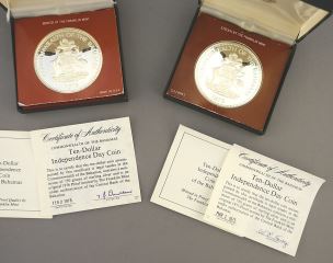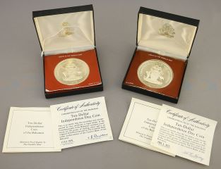 1975 & 1976 Commonwealth of Bahamas $10 Independence Day Coins (2) with Certificate.