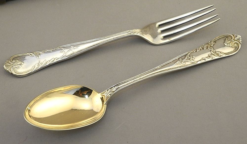 LOT 285 Danish Silver Cased Fork & Spoon, 7" & 7 1/4"L, 98 Grams. Estimate: $80 - $100 Auction Date: Tuesday, April 16 2024 at 4:00 PM