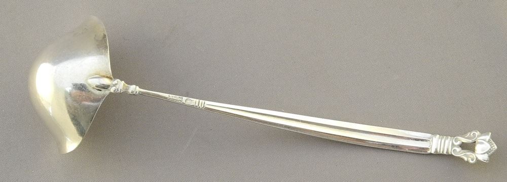 LOT 141 Georg Jensen Sterling (marked) Denmark Sauce Ladle, 24 Grams, 5 3/8"L. Estimate: $100 - $150 Sold For: $170 Auction Date: Tuesday, April 16 2024 at 4:00 PM