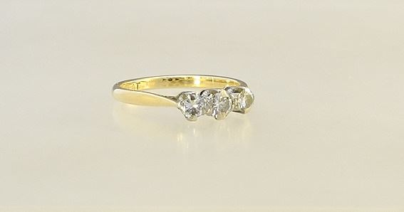 18K Gold & Platinum Diamond Trinity Ring, Size 6, 2.23 Grams.