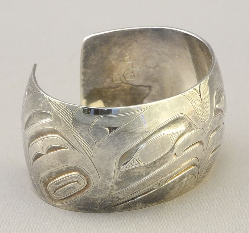Haida Silver Cuff Monogrammed HG, 2 3/8"W, 48.8 Grams with Box.