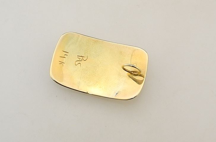 LOT 38 14K (marked) Yellow Gold Pendant Monogrammed PAS (Pat Seaweed), 1 1/4 "H, 6.3 Grams. Estimate: $300 - $400 Sold For: $400 Auction Date: Tuesday, April 16 2024 at 4:00 PM