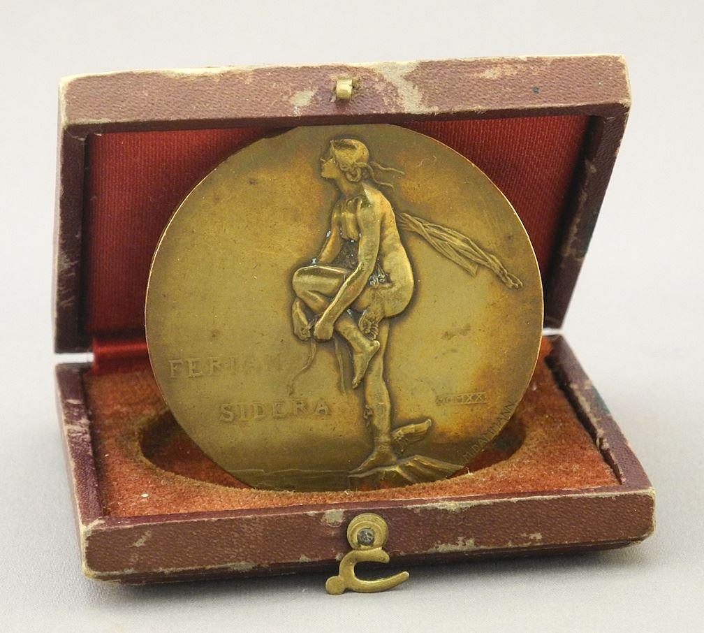 LOT 277 Bronze "Feriam Sidera Medallion signed M. Dammann MCMXX, with case, 57.6 Grams, 2" Diam. Estimate: $60 - $100 Sold For: $50 Auction Date: Tuesday, April 16 2024 at 4:00 PM