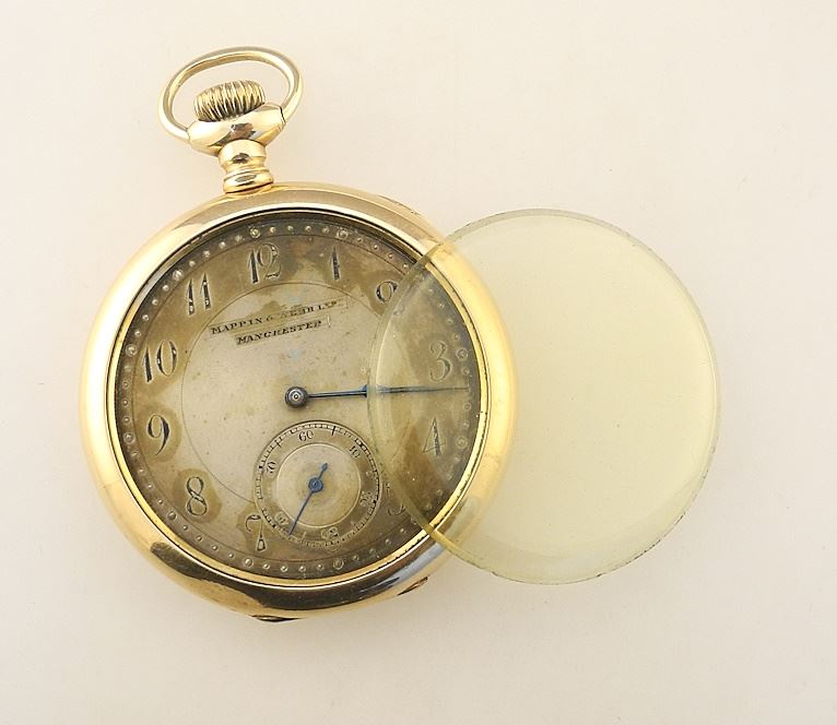 LOT 93 Mappin & Webb Ltd. Manchester Gold Plated Pocket Watch, Lacking Crystal 1 7/8" Diameter. Estimate: $100 - $150 Auction Date: Tuesday, April 16 2024 at 4:00 PM