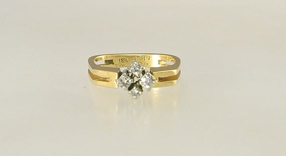 18K (marked) Yellow Gold & Diamond Soft Square Ring, Size 5, 4.59 Gms.