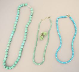 5 Turquoise Bead Necklaces (14" - 22 "L) & Pair of Earrings.