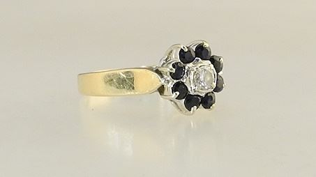 14K (marked) Yellow & White Gold Diamond & Sapphire Cluster Ring, 4.3 Grams, Size 7 1/2.