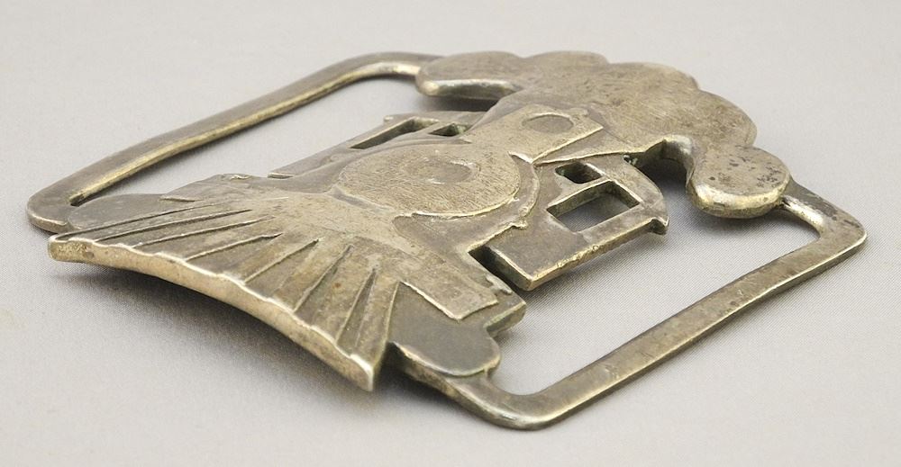 Hallmarked Silver Train Belt Buckle, 93.5 Grams, 3 1/2" x 3 3/8".
