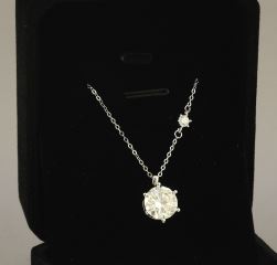 LOT 208 Sterling Silver 4 Carat Moissanite Diamond Necklace with Report. Estimate: $150 - $250 Sold For: $150 Auction Date: Tuesday, April 16 2024 at 4:00 PM