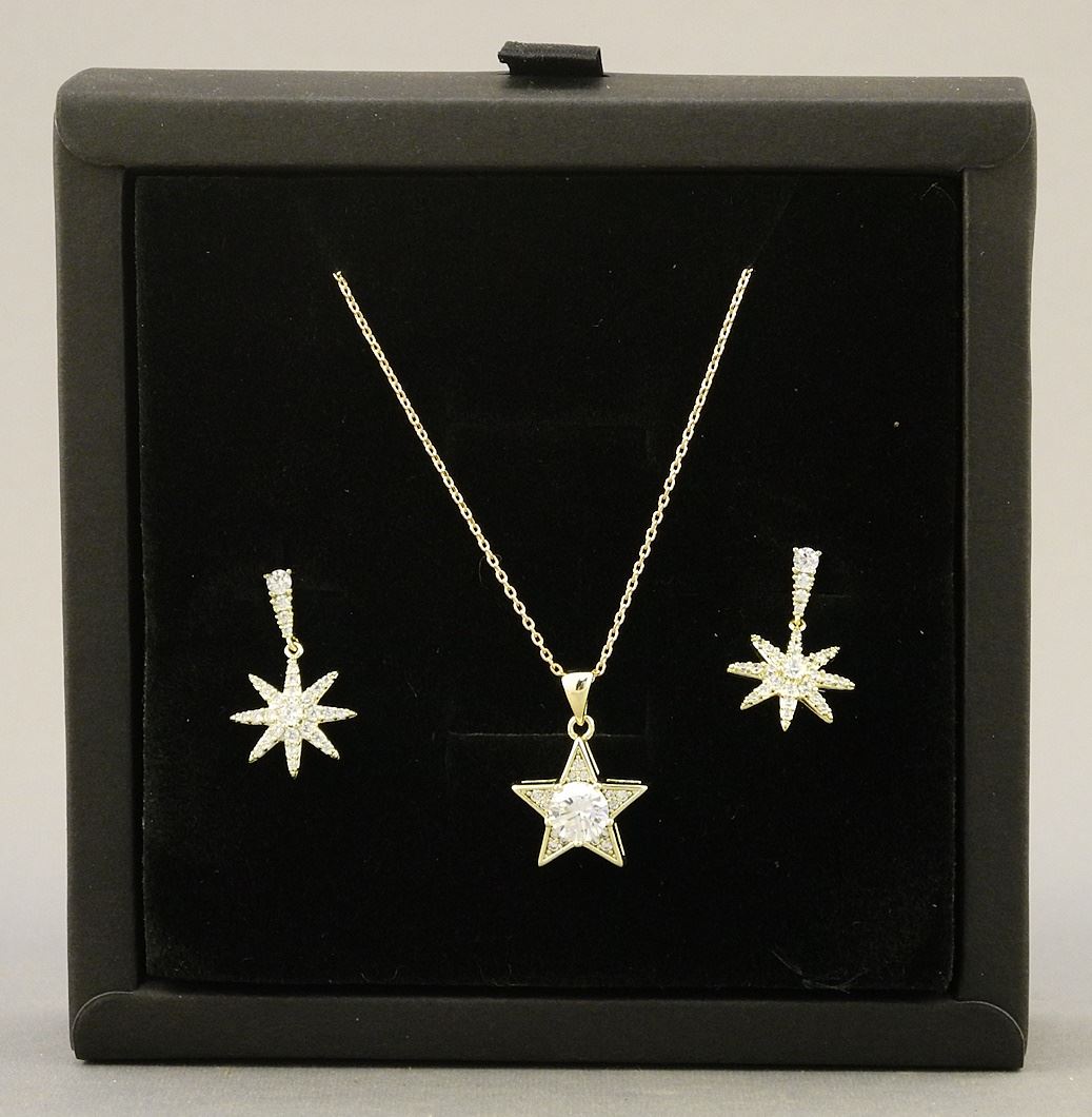 14K Gold Plated 2 Piece Lab Grown Diamond Star Necklace & Earrings.