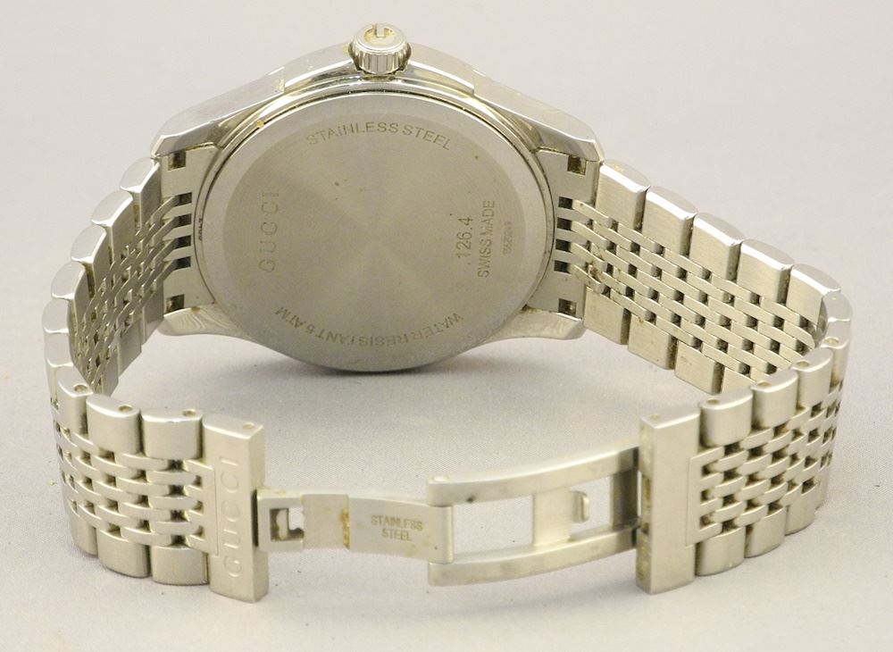 Gents Gucci Stainless 126.4 Wristwatch, serial #13620249 with Box, Guide & Links.
