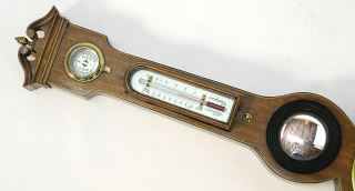 20th C. Banded Mahogany & Brass Wall Barometer, 24"H.