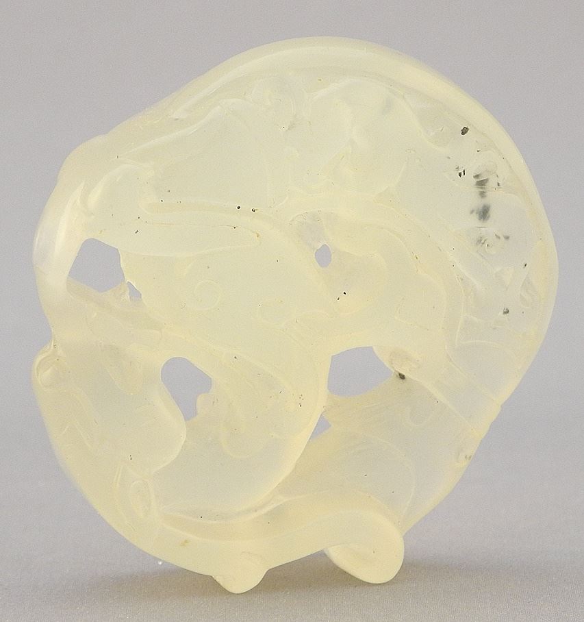 Carved Jade Circular Dragon Pendant, 2 1/16", 38 Grams.