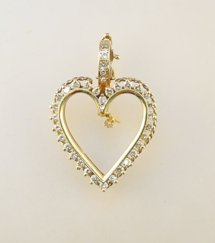 14K & 18K Gold Pendant / Pearl Heart Shaped Enhancer with 37 Diamonds, 8.2 gr.