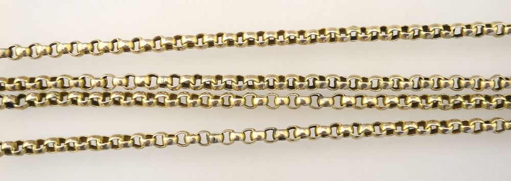 Antique 9C Gold (stamped) Clasp on Gold Plated Watch Chain, 58"L., 45.5 grams