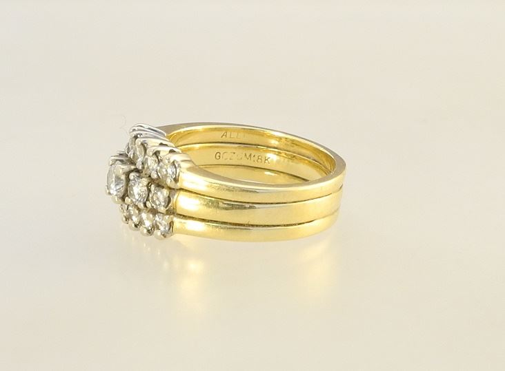 18K (marked) Yellow Gold & Diamond Ring, Size 7 1/4, 10.78 Grams.