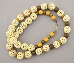 Chinese Carved Bone Bead Necklace, 20 1/2"L.