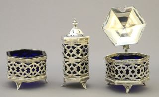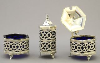 3 Piece Hallmarked Silver Condiment Set, 1 1/2" - 2 3/4"H, 75 Grams.