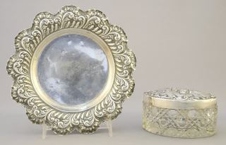 LOT 48 2 Repousse Hallmarked Items: 6 1/4" Coaster & Dresser Jar, TW 117 Grams. Estimate: $50 - $80 Sold For: $100 Auction Date: Tuesday, April 16 2024 at 4:00 PM