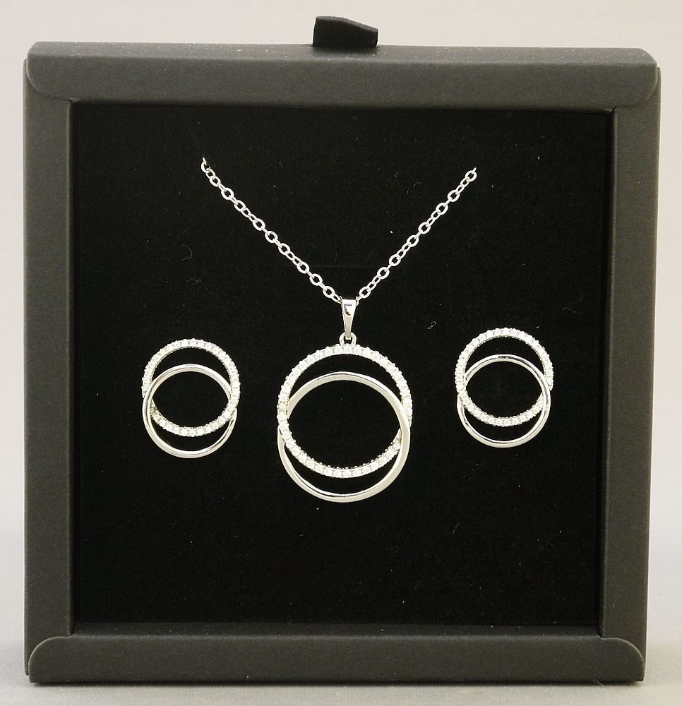 LOT 189 Platinum Plated 2 Piece Double Circle Necklace and Earrings. Estimate: $50 - $80 Sold For: $45 Auction Date: Tuesday, June 18 2024 at 4:00 PM
