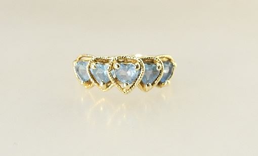 10K (marked) Yellow Gold & Blue Stone Heart Ring, Size 6 3/4, 2.1g.