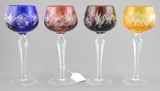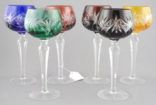 LOT 96 6 Bohemian Overlay Crystal Stem Glasses, 7 1/2"h. Estimate: $120 - $180 Sold For: $120 Auction Date: Tuesday, November 05 2024 at 4:00 PM