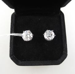 LOT 166 3c (each) Moissanite Stud Earrings Mounted in Sterling Silver with White Gold Overlay. Estimate: $50 - $100 Sold For: $180 Auction Date: Tuesday, November 05 2024 at 4:00 PM