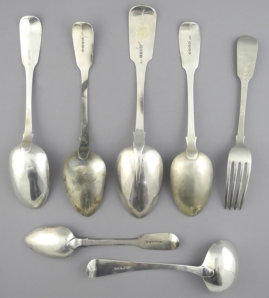 LOT 113 Collection of Georgian Silver Cutlery Items, 7 Pieces, 470g. Estimate: $325 - $400 Sold For: $450 Auction Date: Tuesday, November 05 2024 at 4:00 PM