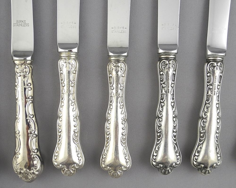 8 Birks Sterling Silver Butter Knives with Coronation & Souvenir Spoons, TW 470g.